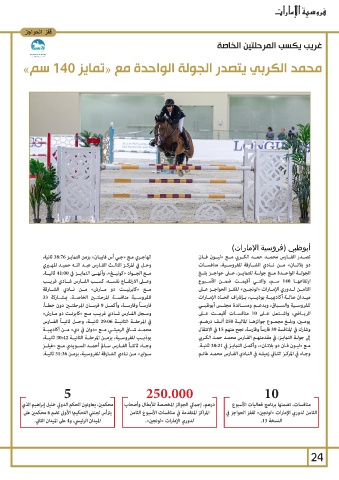 للفروســية منافســة المرحلتــن الخاصــة ،بمشــاركة 33 ارتفاعهــا 140ســم ،والتــي أقيمــت ضمــن الأســبوع