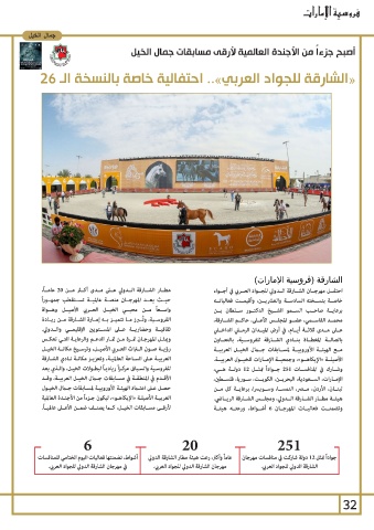 الفروســية ،وتُــرز مــا تتميــز بــه إمــارة الشــارقة مــن ريــادة خاصــة بنســخته السادســة والعشريــن ،وأقيمــت فعالياتــه
