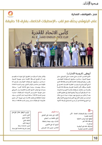 معدل السرعة 26.98 :كلم/ساعة الخامس :عيسى راشد المزروعي المشاركة 241 :فارساً وفارسة