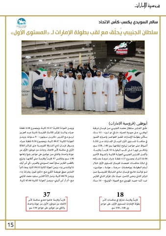 130سـم ،وتنافـس 37فارسـاً وفارسـة عـى ألقابهـا ،وتـ ّوج وتنافــس فيهــا عــى لقــب البطولــة 18فارســاً وفارســة.