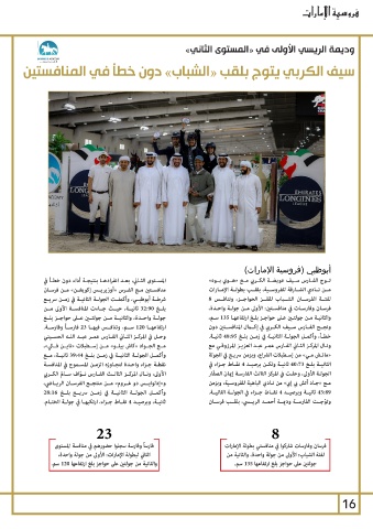 ارتفاعهــا 120ســم ،وتنافــس فيهــا 23فارســاً وفارســة. فرسـان وفارسـات في منافسـتين :الأولى مـن جولـة واحـدة،