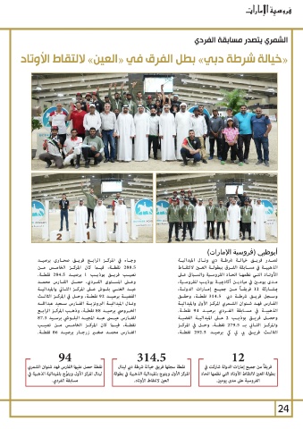 الخــروصي برصيــد 88نقطــة ،وذهــب المركــز الرابــع وســجل فريــق شرطــة دبي 314.5نقطــة ،وحقــق