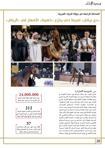 خيل ًا ،شاركت في منافسات الجولة الرابعة وتبلــغ جوائــز جولــة الجيــاد العربيــة 24مليــون يــورو ،حيــث