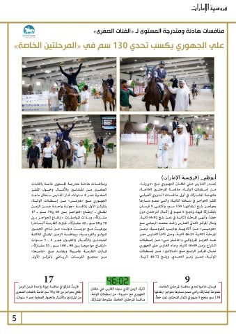من المبتدئين والأشبال والخيول الصغيرة عمر 4سنوات. منافسة المرحلتين الخاصة ،مفتوحة المشاركة. 130سم ،ونجح 5منهم في إكمال المرحلتين دون خطأ.