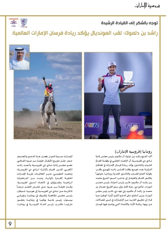الإمــارات مســرة التميــز بفضــل هــذا الدعــم والاهتــام. رومانيا (فروسية الإمارات)