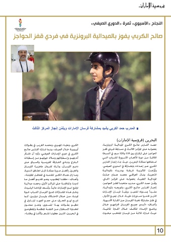 الكــربي في دوري الإمــارات الصيفــي ،وأود أن نشــكر حصــد الفــارس صالــح الكــربي الميداليــة البرونزيــة،