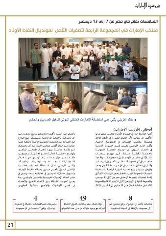 في تبنــي المبــادرات والبرامــج المبتكــرة للتطويــر. إقامـة تصفيـات المجموعة الرابعة في مصر من 7إلى 13ديسـمبر،