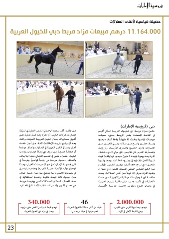 أهـل وعشـاق الخيـل العربيـة في الإمـارات والعـالم ،موضحاً مبيعــات قياســية بلغــت 11مليونــاً و 164ألــف درهــم،