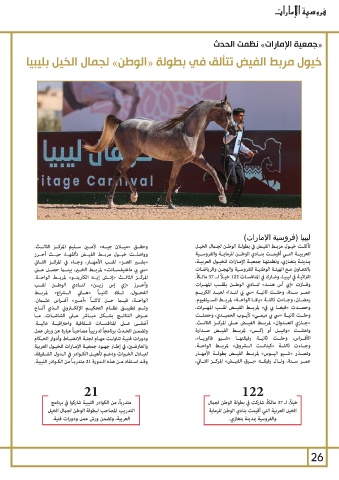المركــز الثالــث «إتــش إيــه الكارينــو» لمربــط الواحــة. بمدينـة بنغـازي ،ونظمتهـا جمعيـة الإمـارات للخيـول العربيـة،