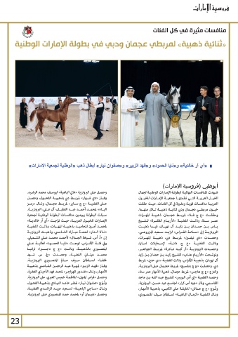 الإمـارات للخيـول العربيـة ،حيـث ت ّوجـت «أي آر خالديـة» خيــول مربطــي عجــان ودبي ثنائيــة ذهبيــة لــكل منهــا.