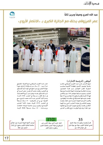 في عــالم القفــز مســجل ًا في التمايــز 37:01ثانيــة. وجـاءت المنافسـة بمواصفـات الجولة الواحـدة مع جولة