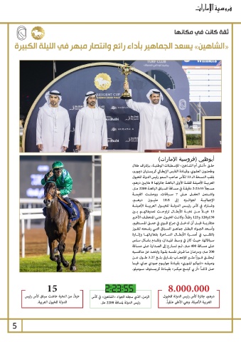 العربيـة الأصيلـة للفئـة الأولى البالغـة جائزتهـا 8ملايـن درهم،
