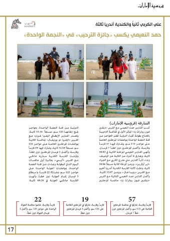 وفارســة ،وأكمــل 3فرســان المرحلتــن دون خطــأ. عــى حواجــز 115ســم ،وشــارك فيهــا 57فارســاً