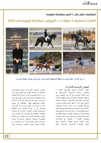 الإمارات تستضيف 5بطولات لـ «الترويض» بمشاركة أوروبية في 2026