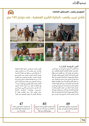 مشــاركاً ،وأكمــل 25منهــم المرحلتــن دون خطــأ. المرحلتـن الخاصـة عـى 130سـم ،وتنافـس فيهـا 85