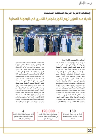 110ســم ،حيــث تفوقــت عــى 40فارســة لتحصــد مــن أنديــة ومراكــز الفروســية في الإمــارات.