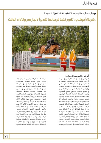 لفرسـان شرطـة أبوظبـي في هـذه البطولـة الدوليـة. للرياضــات النوعيــة والفروســية ،لمــا لهــا مــن