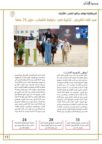 مشـاركاً ،وحصـل الفـارس عبـد اللـه حمـد الكـربي مـع فيهــا 31فارســاً وفارســة مــن 13دولــة ،وســجل