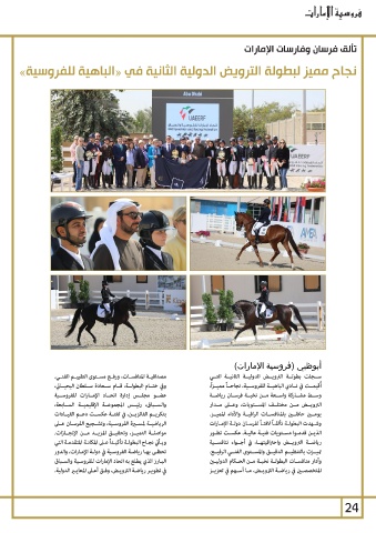 عضــو مجلــس إدارة اتحــاد الإمــارات للفروســية ســجلت بطولــة الترويــض الدوليــة الثانيــة التــي