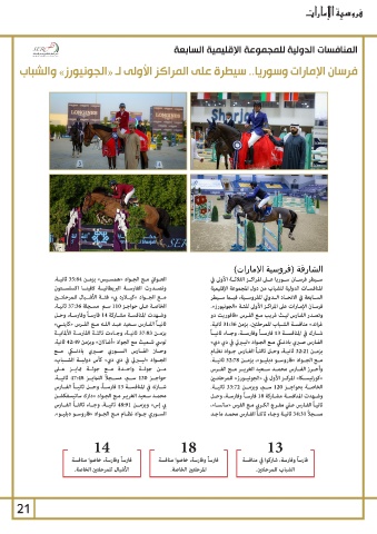 وشـهدت المنافسـة مشـاركة 14فارسـاً وفارسـة ،وحـل الســابعة في الاتحــاد الــدولي للفروســية ،فيــا ســيطر