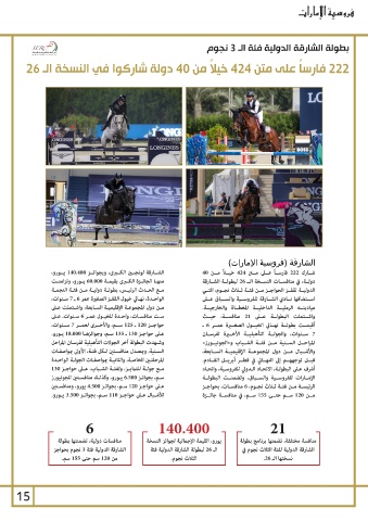 222فارسًا على متن 424خيلًا من 40دولة شاركوا في النسخة الـ 26