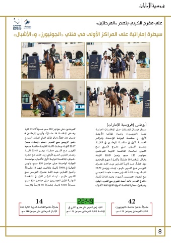 للمرحلتـن ،عـى حواجـز 110سـم ،مسـجل ًا 22:49ثانية. أبوظبي (فروسية الإمارات)