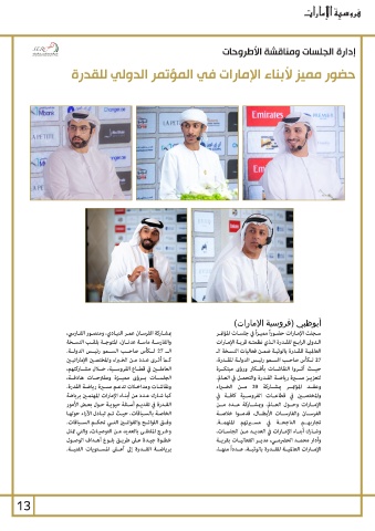 برياضــة القــدرة إلى أعــى المســتويات الفنيــة. وشـارك أبنـاء الإمـارات في العديـد مـن الجلسـات،