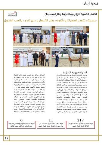«جمــران الهواجــر» لمربــط الهواجــر الفضيــة، وشـهدت المنافسـات مشـاركة 217جـواداً مـن 11دولـة،