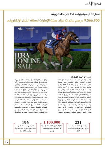 المتزايـد بسـباقات الخيـل في الدولـة وسـهولة اسـتخدام وضـم المـزاد 196خيـاًُ ،عـرض منهـا 169خيـ ًا ،وتـم بيع