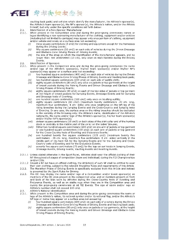 vaulting back pads) and vehicles which identify the manufacturer, the Athlete's sponsor(s),