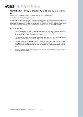 APPENDIX B - Olympic Charter: Rule 40 and by-law to Rule
