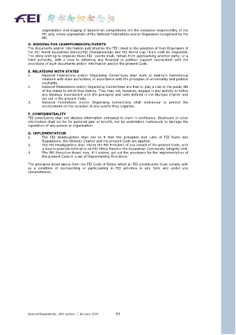 organisation and staging of Equestrian competitions are the exclusive responsibility of the
