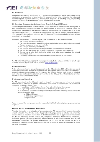3.2 Reporting Harassment and Abuse at any time, including at FEI Events