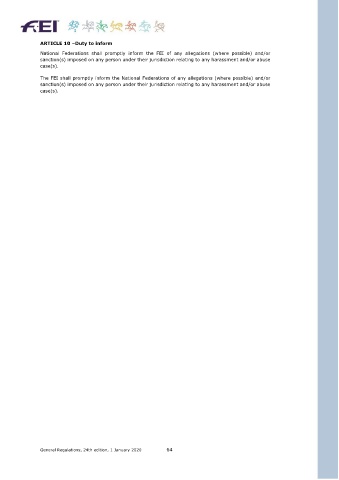 The FEI shall promptly inform the National Federations of any allegations (where possible) and/or
