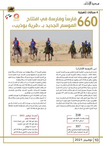دبي الدوليـة للقـدرة بسـيح السـلم 28سـباقاً وبطولـة ،بينـا تنظـم دشـنت قريـة بوذيـب العالميـة للقـدرة بالختـم موسـم القـدرة الجديـد