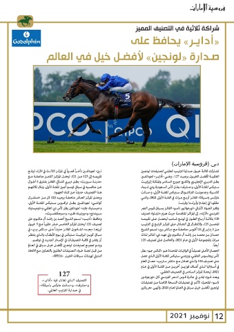 في صـدارة الترتيب العالمي. لونجـن لأفضـل خيـل سـباق في العـالم لعـام ،2021وأنهـى «هريكـن