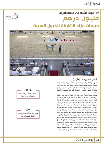 للخيول العربية تم بيعها. الخيــول المباعــة نحــو مليــون درهــم ،حيــث تــم بيــع %60مــن