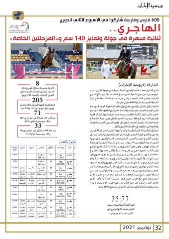 يومين فوق حواجز بين 115و 120سم71. حاجـز مركـب تركيبـاً ثلاثيـاً ،ارتفعـت بسـببه عـدد قفـزات الجولـة إلى 13قفـزة،