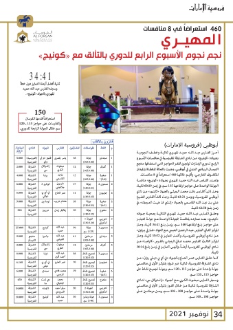 للفروسية ()105/100( *)5/4 أبوظبـي للفروسـية ،وبزمـن 62:21ثانيـة ،وجـاء ثالثـاً الفـارس الشـيخ