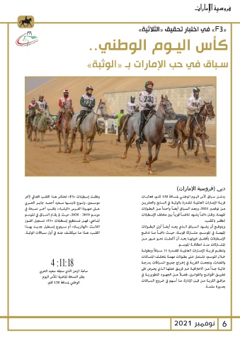 وظلـت إسـطبلات « »F3تحتكـر هـذا اللقـب الغـالي لآخر دبي (فروسية الإمارات)