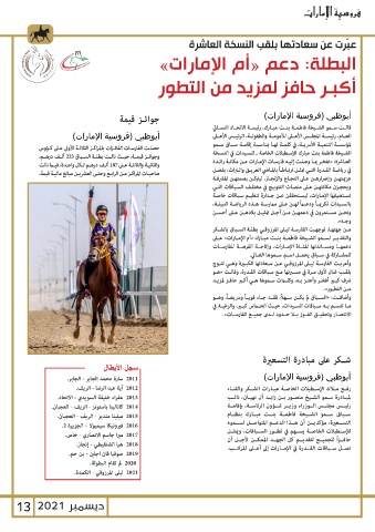 والثانيـة والثالثـة عـى 187ألـف درهـم لـكل واحـدة ،فيـا نالت العـاشرة« :نفخـر بمـا وصلـت إليـه فارسـات الإمـارات مـن مكانـة رائـدة
