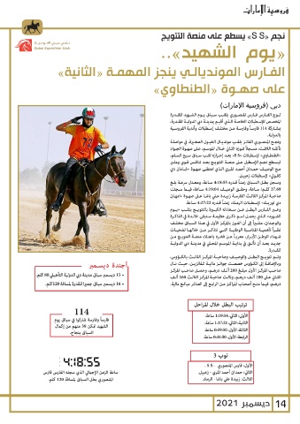 • 15ديسمبر سباق مدينة دبي الدولية التأهيلي 80كلم. تــوج الفــارس فــارس المنصــوري بلقــب ســباق يــوم الشــهيد للقــدرة