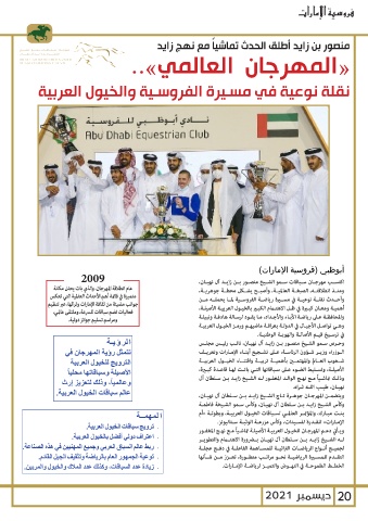 جوانب مضيئة من ثقافة الإمارات وتراثها ،عبر تنظيم وأحــدث نقلــة نوعيــة في مســرة رياضــة الفروســية لمــا يحملــه مــن