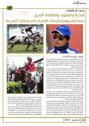 الإمـارات» للفارسـات الهاويـات «إيفـار» ،وشـاركت شـذرة في هذا السـباق أبوظبي (فروسية الإمارات)
