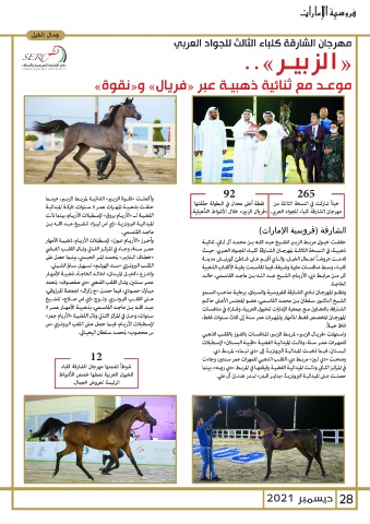 عــى اللقــب البرونــزي .وتــوج «إي اس صــاح» للشــيخ ونظـم المهرجـان نـادي الشـارقة للفروسـية والسـباق ،برعايـة صاحـب السـمو