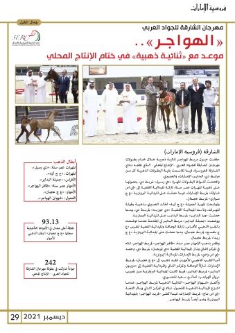 الفحول« :شهوان الهواجر». شـارقة» لمربـط الإمـارات ،فيـا حصلـت عـى الميداليـة البرونزيـة «ع ج