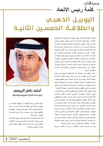 تقدمــه للوطــن والعــالم. الاتحـاد التـي انطلقـت منـذ عـام ،1971وهـو احتفـا ٌء بـالإرادة