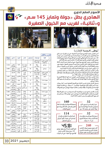 12محمد شافي كورتينا أبوظبي 5.000 9صغيرة ( *)5/4جولة فارساً وفارسة شاركوا في منافسات لفئةالأشبال،و 24استعراضاًللخيول