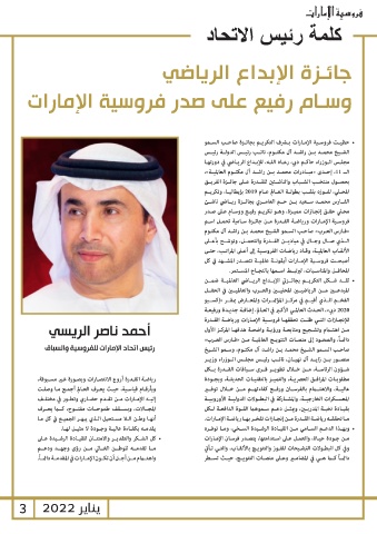 أحمد ناصر الريسي •حظيـت فروسـية الإمـارات بـرف التكريـم بجائـزة صاحـب السـمو