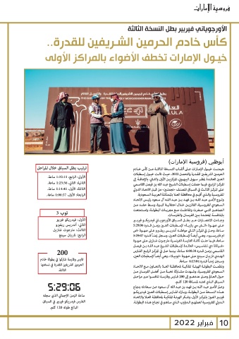 الأولى :الرابع 1:32:11 ،ساعة. هيمنـت خيـول الإمـارات عـى ألقـاب النسـخة الثالثـة مـن كأس خـادم